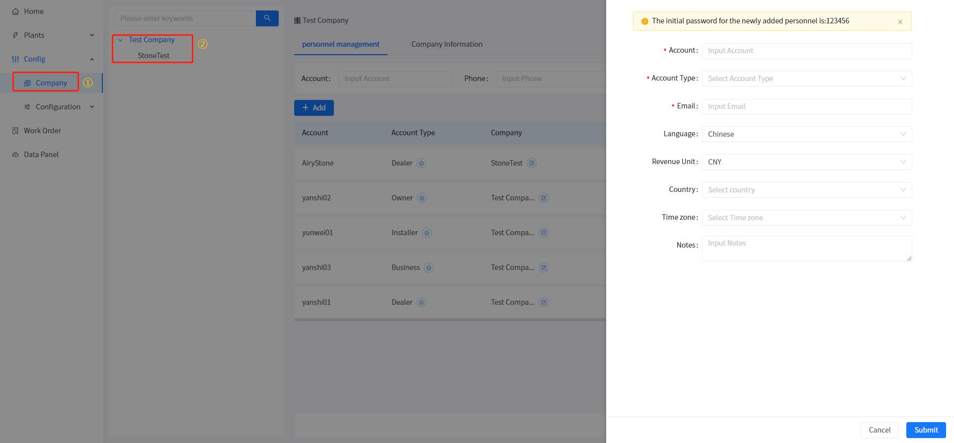 ② Select any company in the tree view on the left, click the [New Company] button, and the Add Company page will pop up on the right.