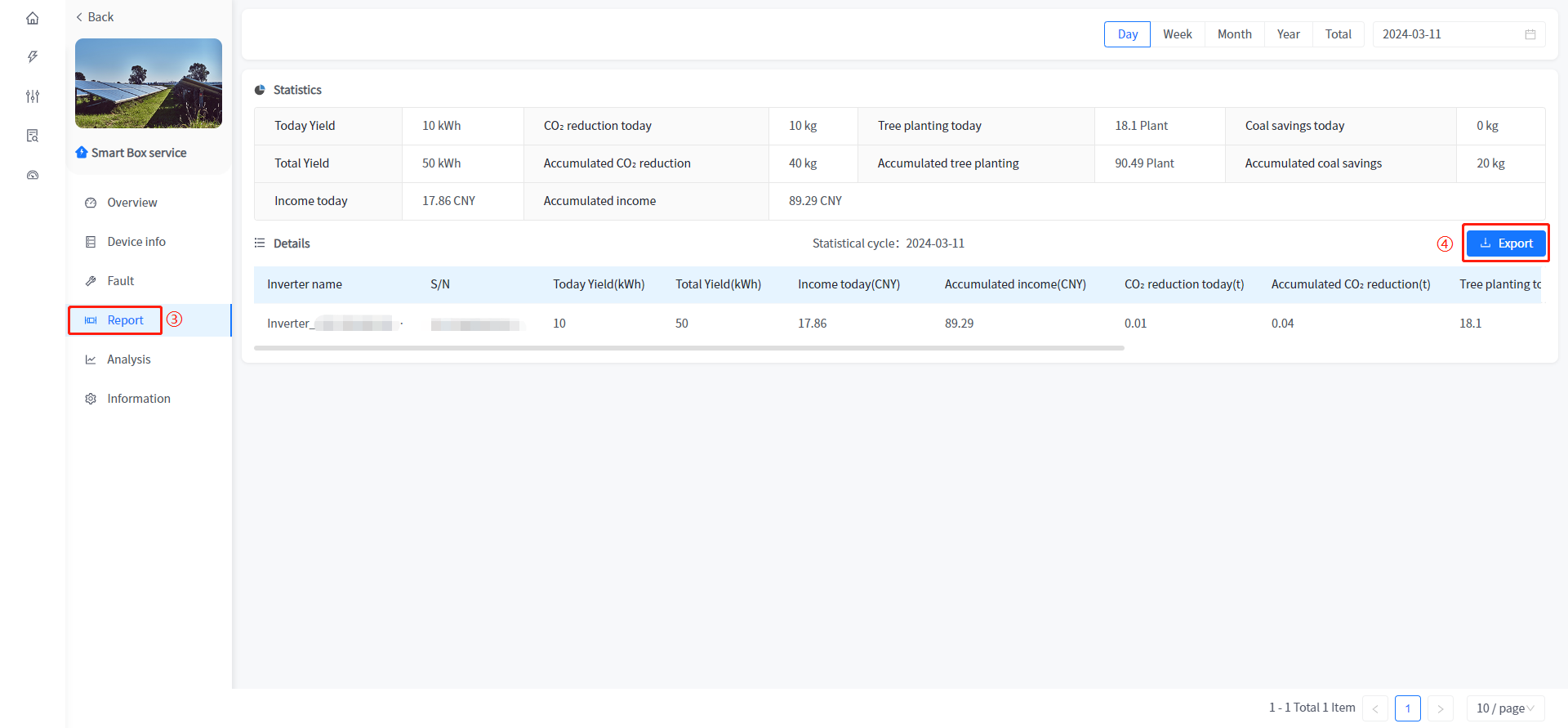 Smart Cloud ① Click the name of the plant in the plant list to enter the details of the plant.