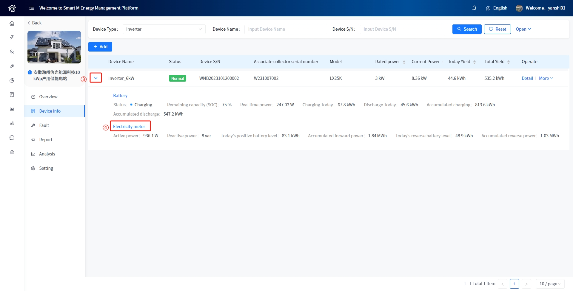 Smart Cloud Support you to view the energy storage and power generation equipment under the energy storage inverter.