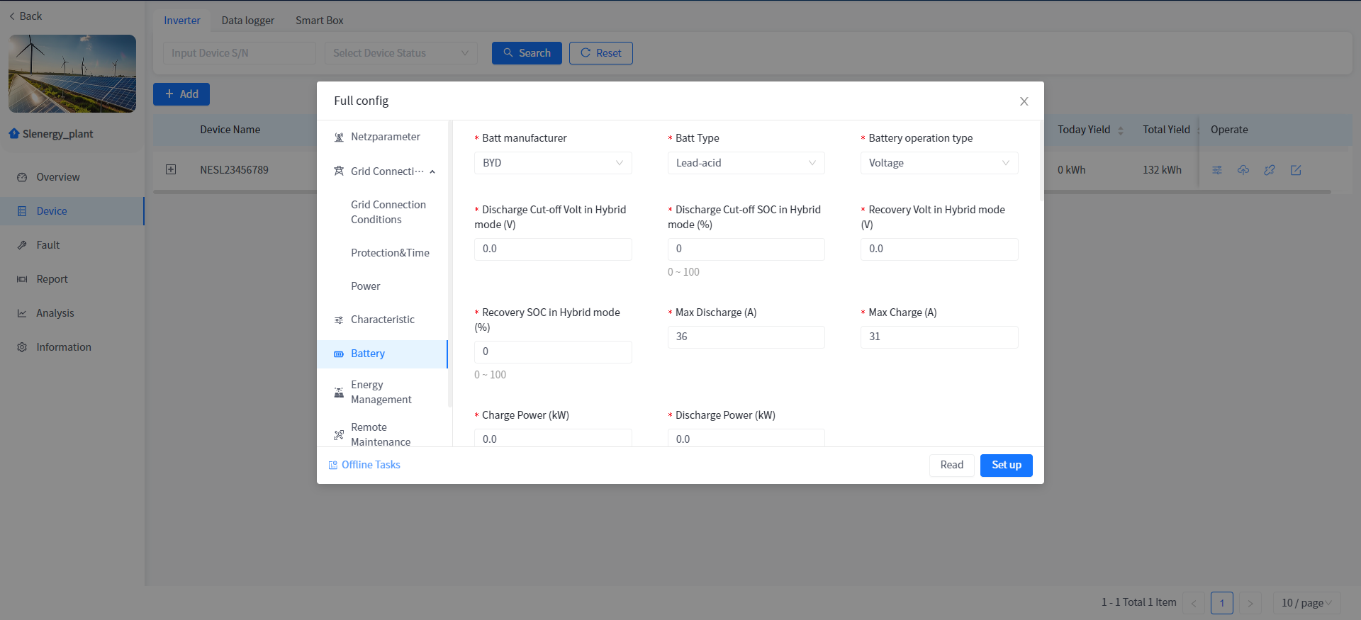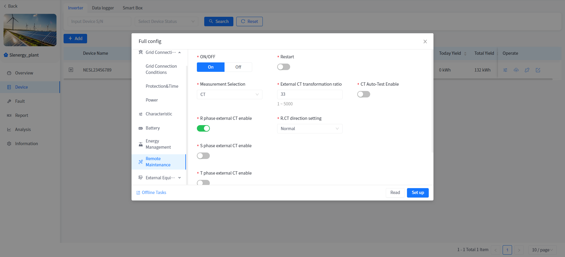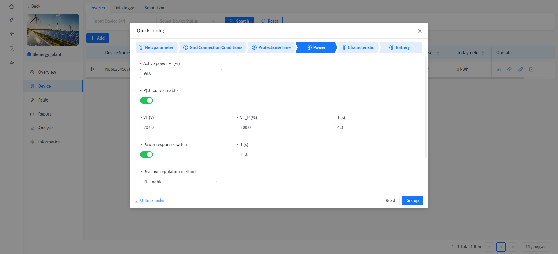 This system supports the operation of reading or setting the working parameters of the Device in the power plant Device details.