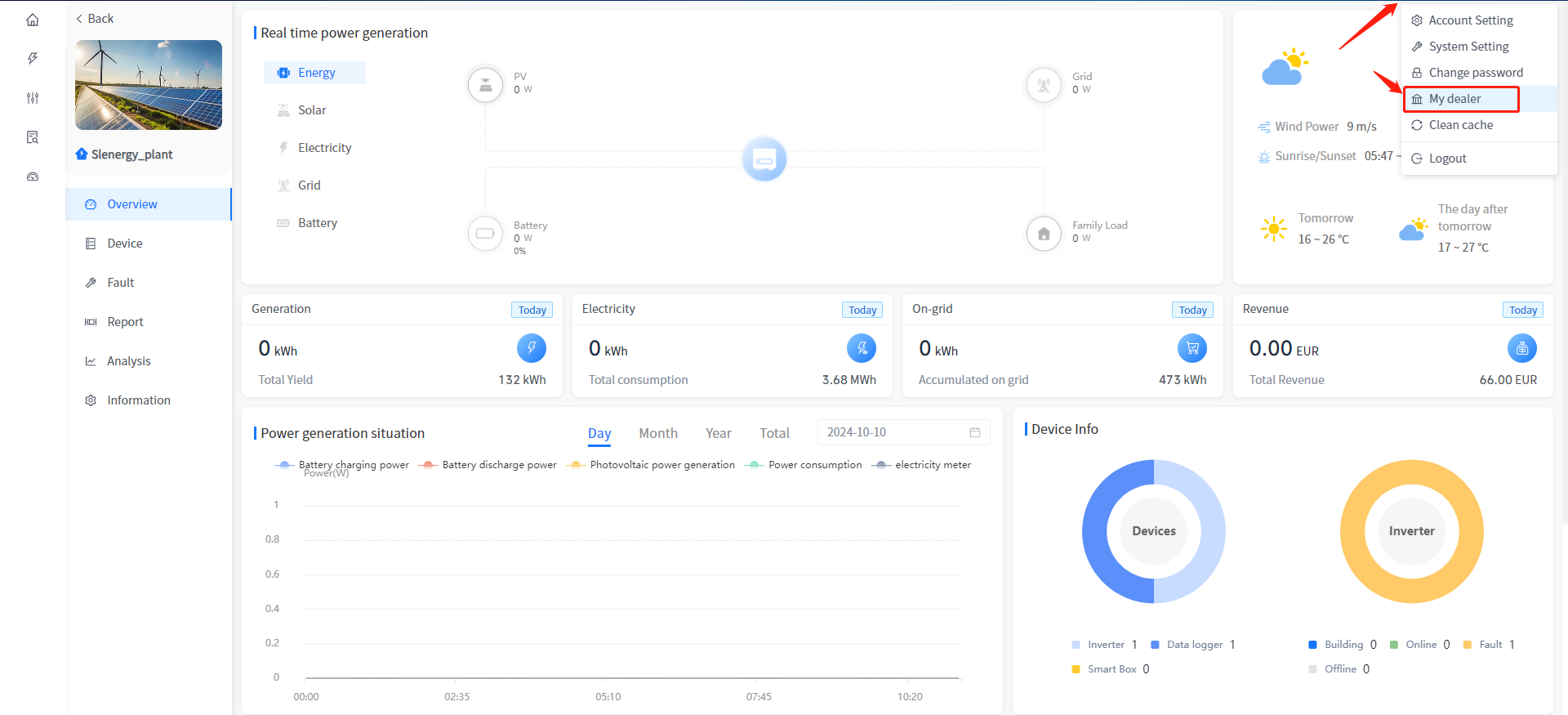 Smart Cloud Smart Cloud Support you to search for the contact information of your superior dealer in the system, by clicking the [My Dealer] button in the top right corner avatar.