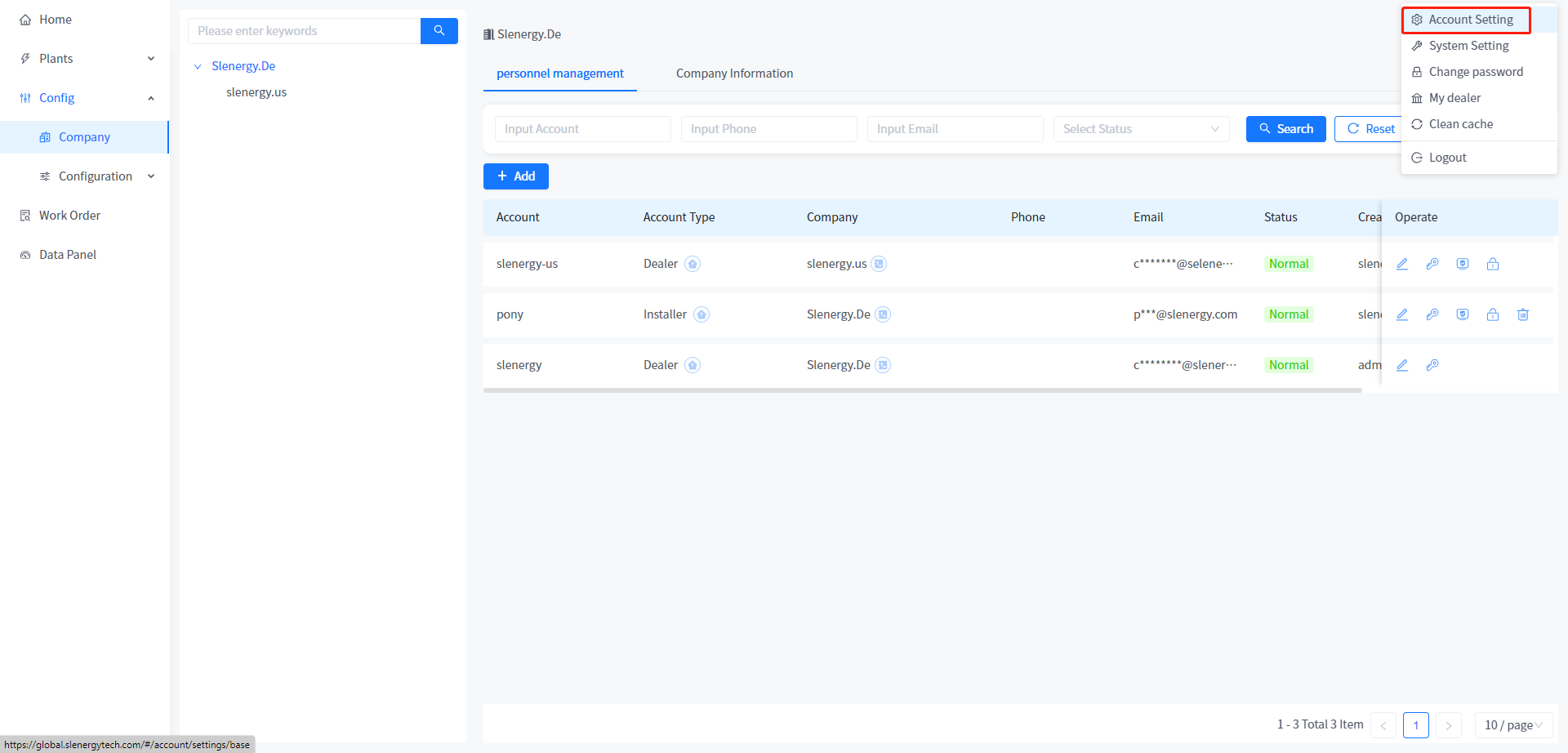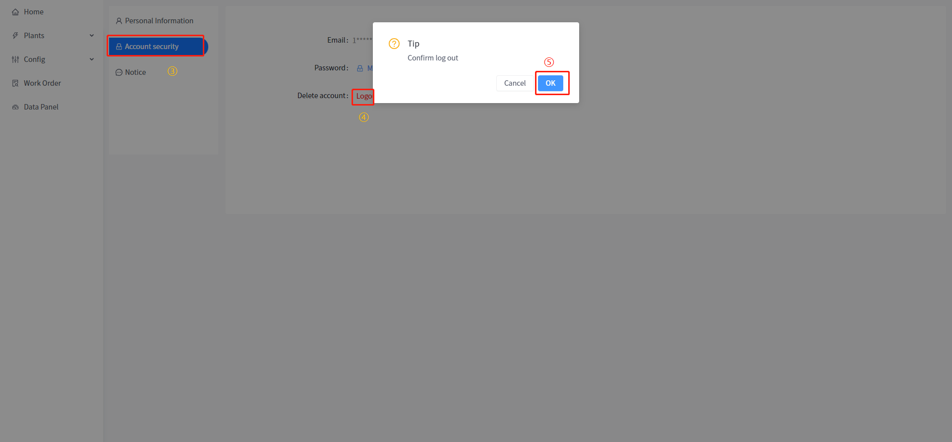 The system supports the function of sending message notification when the status of the plant changes. You can actively set the details of this message notification in the Account Settings - Message notification on the PC side and My - notification on the APP side.