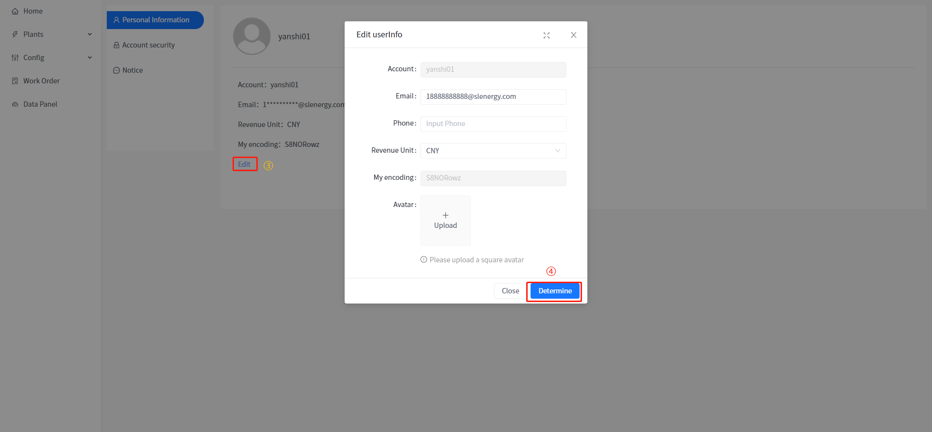 ⑤ After entering the personal information that conforms to the rule verification, click the confirm button, you can modify your personal information.