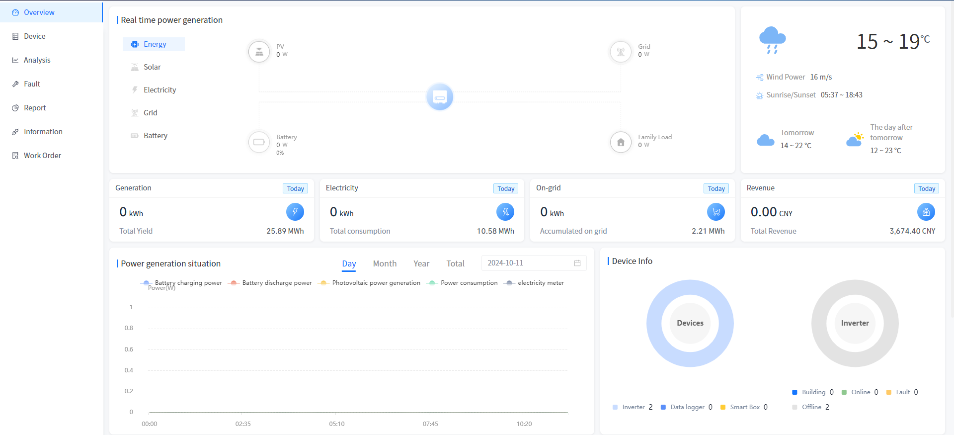 [Electricity] Show the real-time power and generation statistics of photovoltaic power generation at your selected plant.