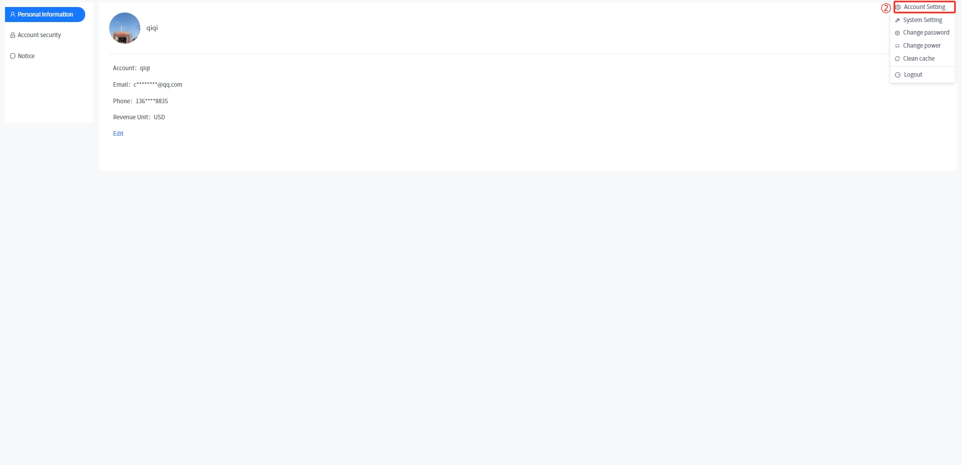 This system supports you to modify your personal basic information in account settings. The specific steps are as follows: